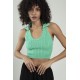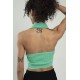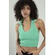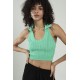 Polo yaka fıstık yeşili  renkli kadın saç örgülü yuvarlak açmalı spor triko bluz atlet crop top.