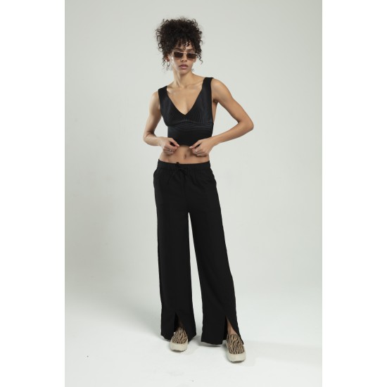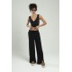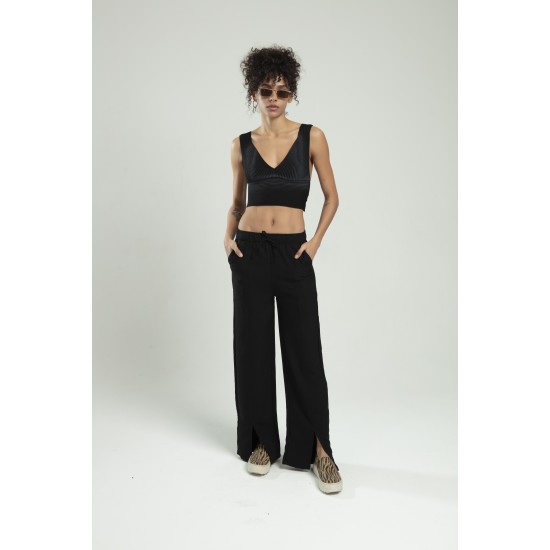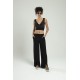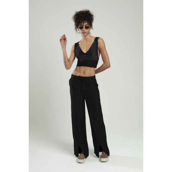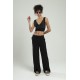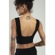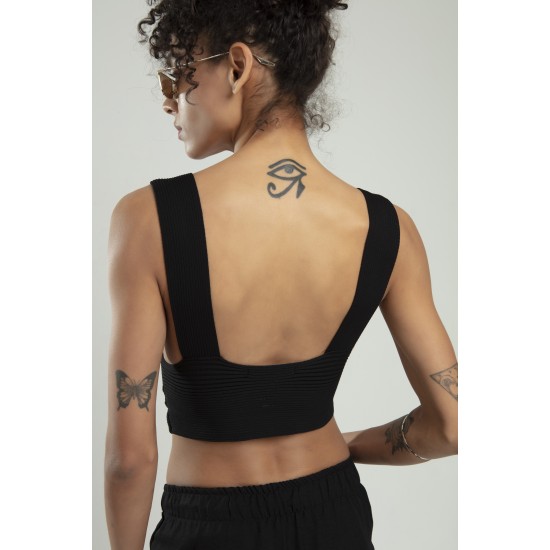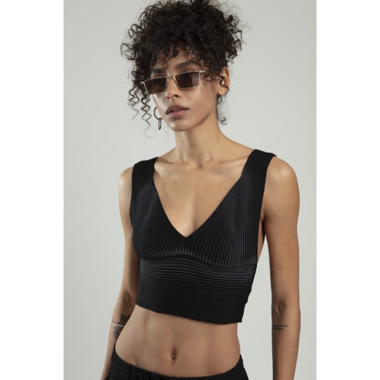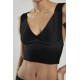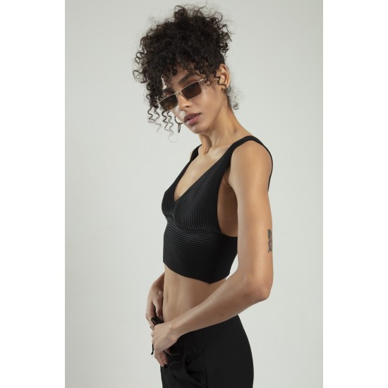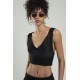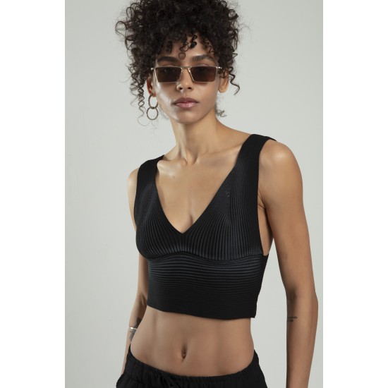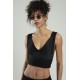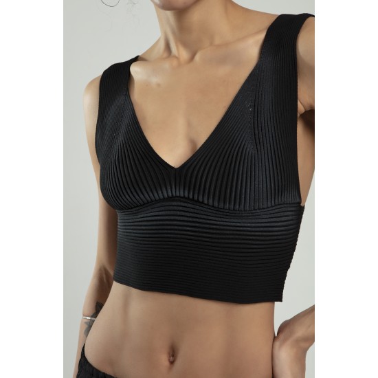Siyah renkli kadın özel sprey boyamalı V yakalı spor triko atlet büstiyer crop top bluz.
